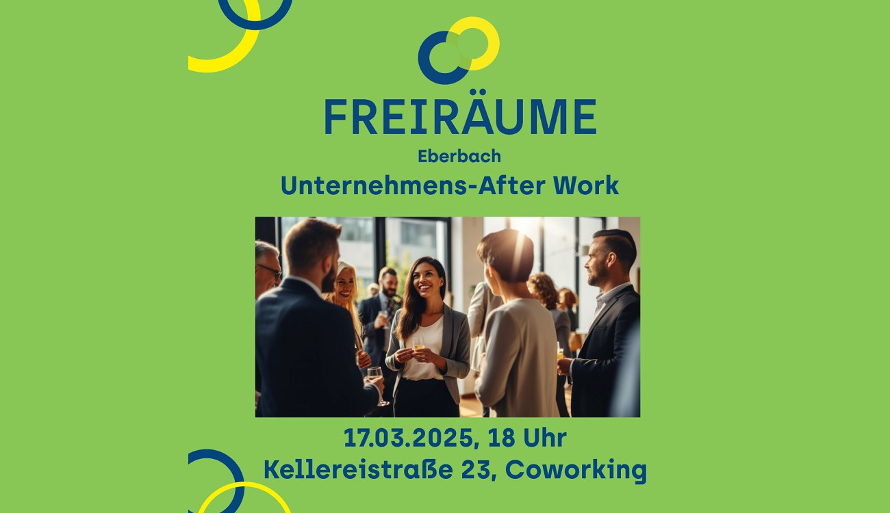 Unternehmerinnen und Unternehmer aus der Region haben am 17. März 2025 um 18 Uhr die Gelegenheit, sich in einer inspirierenden Umgebung auszutauschen und wertvolle Kontakte zu knüpfen. Das After-Work-Treffen findet in den modernen Räumlichkeiten des FREIRÄUME Co-Workings in der Kellereistraße 23, 69412 Eberbach, statt.