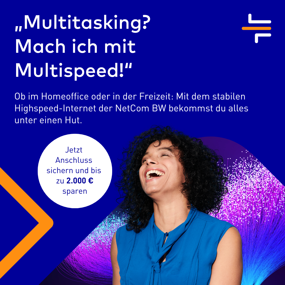 Um die Vorteile eines Glasfaserhausanschlusses noch einmal detailliert zu erläutern und um über den geplanten Ablauf des Ausbauvorhabens aufzuklären, laden die NetCom BW alle Interessent*innen zu einer Informationsveranstaltung ein. Diese findet am Mittwoch, den 02.07.2025, um 19 Uhr in der Stadthalle Eberbach (Leopoldsplatz 1) statt. Zusätzlich dazu bietet die NetCom BW in den kommenden Wochen mehrere Vor-Ort-Beratungen in der „Werkstatt“ FREIRÄUME (Kellereistraße 19) an. Die genauen Termine hierfür finden sich ebenso wie alle Informationen zu Produkten und Angeboten ebenfalls unter www.netcom-bw.de/eberbach.