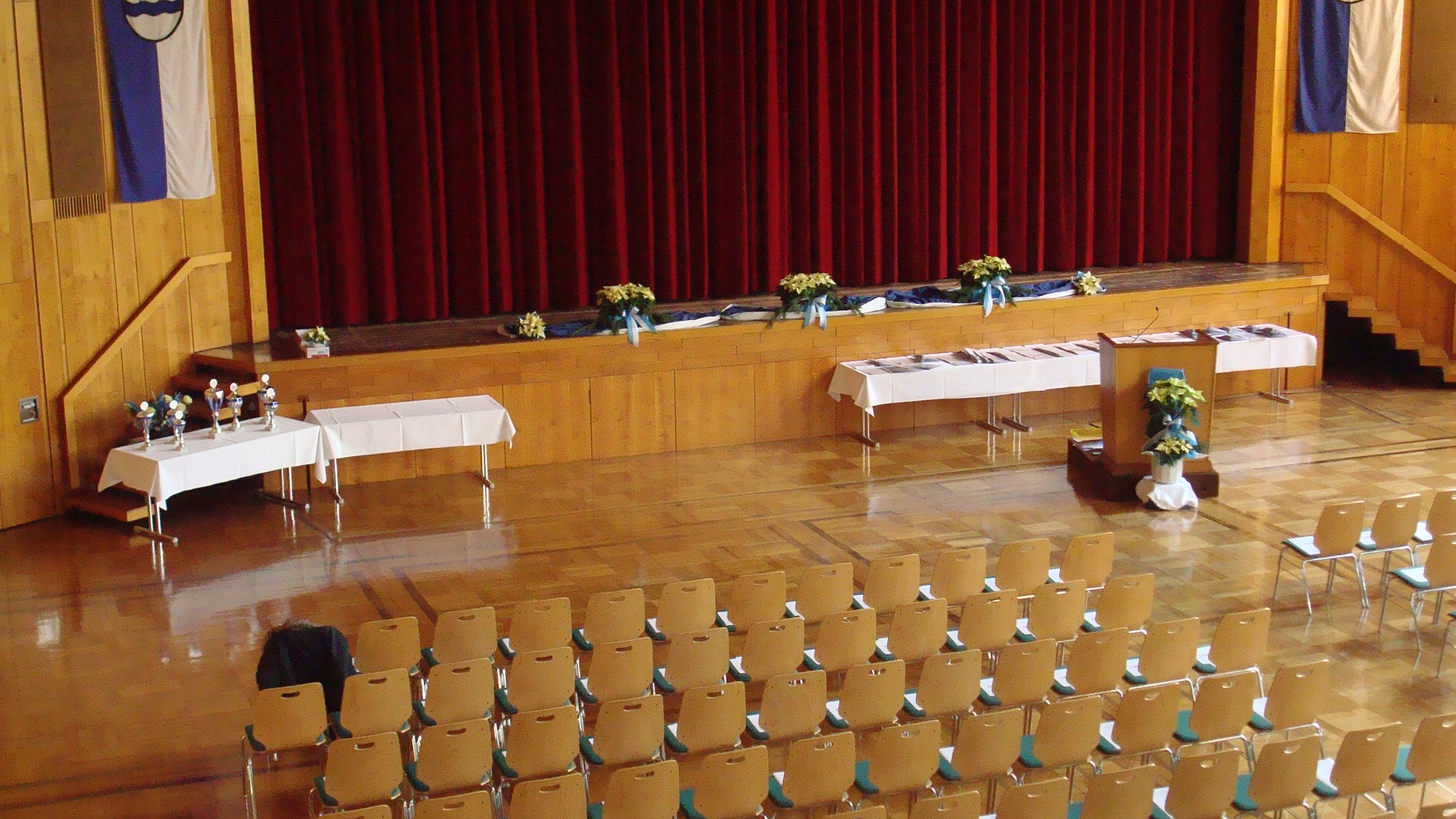 Das Konferenzzimmer im ersten Stock der Stadthalle ist über einen Aufzug barrierefrei zugänglich und bietet Platz für bis zu 50 Personen (je nach Bestuhlungsvariante). Der klimatisierte Raum ist mit einem 75 Zoll großen Bildschirm und Flipchart ausgestattet und somit für kleinere Vorträge oder Schulungen bestens geeignet.