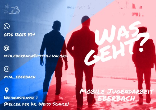 Im Auftrag der Stadt Eberbach betreibt der Verein Postillion e.V. die Mobile Jugendarbeit vor Ort, und setzt sich für die Interessen und Belange der Jugendlichen ein. Durch die Mobile Jugendarbeit erhalten Kinder und Jugendliche wichtige Impulse und Orientierung für ihre Lebens- und Freizeitgestaltung. Dadurch wird insbesondere die Befähigung zur Selbstbestimmung gefördert. Hierbei gehört auch das Aufzeigen von Grenzen und das Auseinandersetzen mit sozialen Inhalten dazu. In den verschiedensten Projekten, die sich an den Interessen und Bedürfnissen der Jugendlichen ausrichten, werden die jungen Menschen zur sozialen und gesellschaftlichen Mitverantwortung angeregt und zeitgleich ihr Selbstwertgefühl gestärkt.