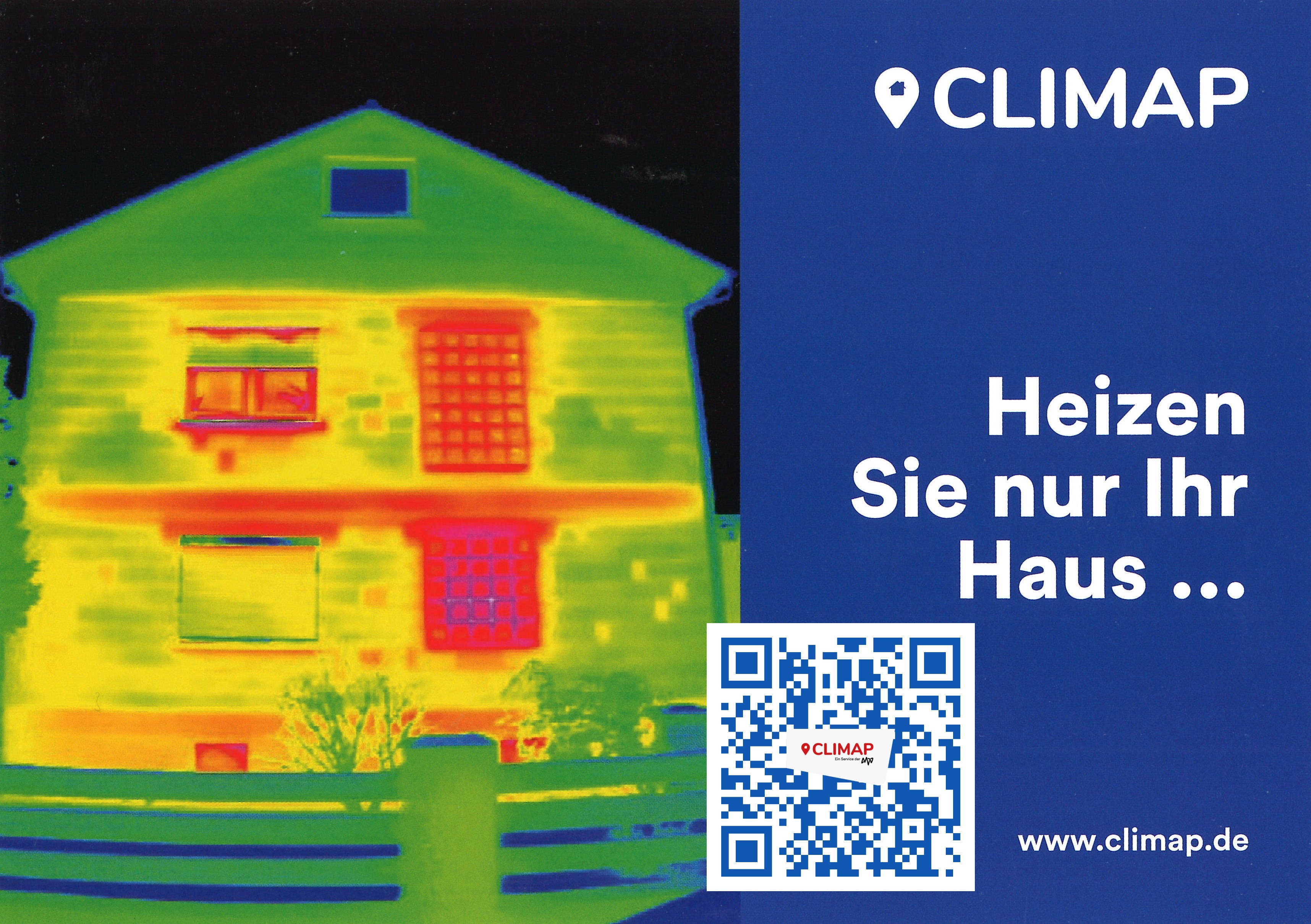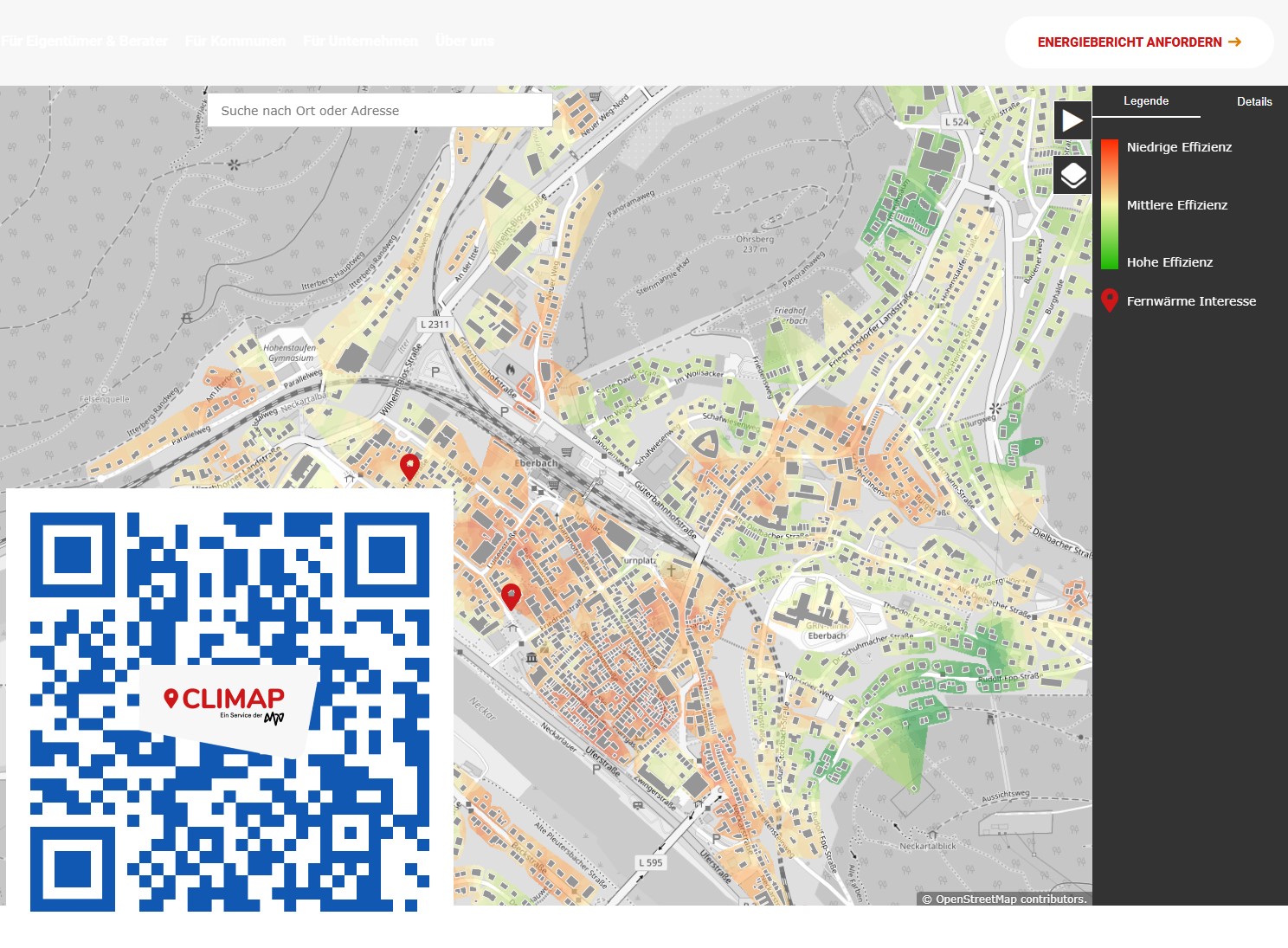 Thermografie*-Berichte von CLIMAP für Ihre Immobilie bestellen und Ihr Interesse an einem Wärmenetzanschluss auf der digitalen Karte für Eberbach anmelden.