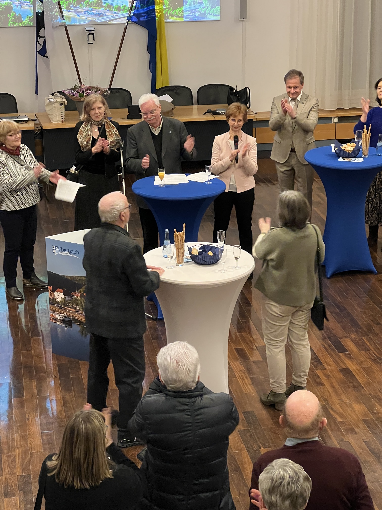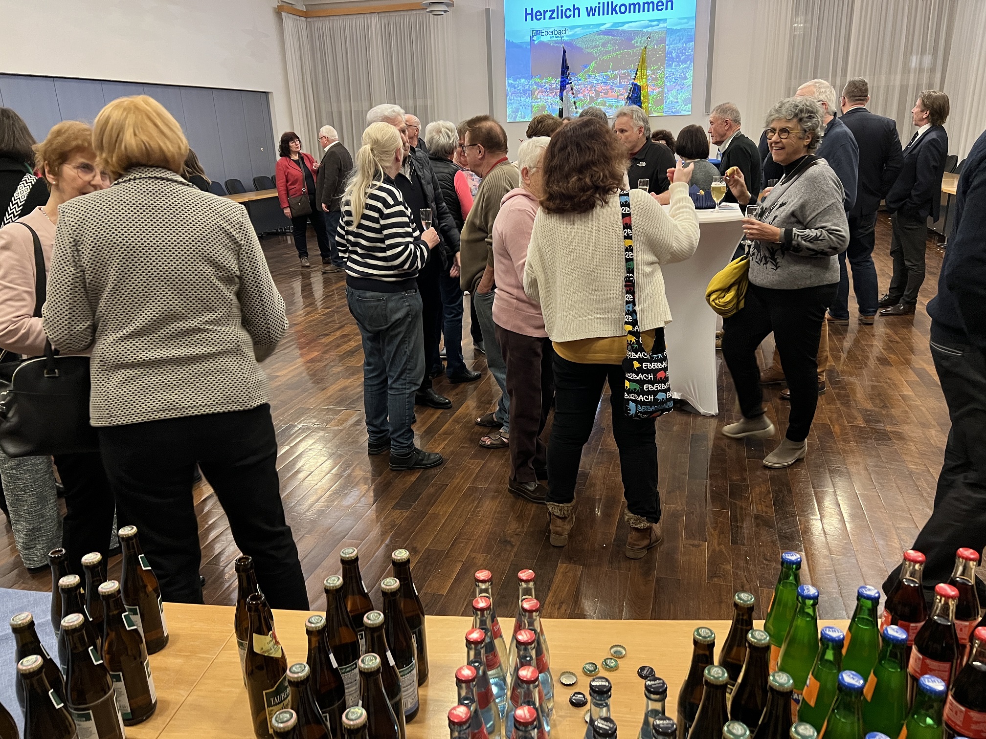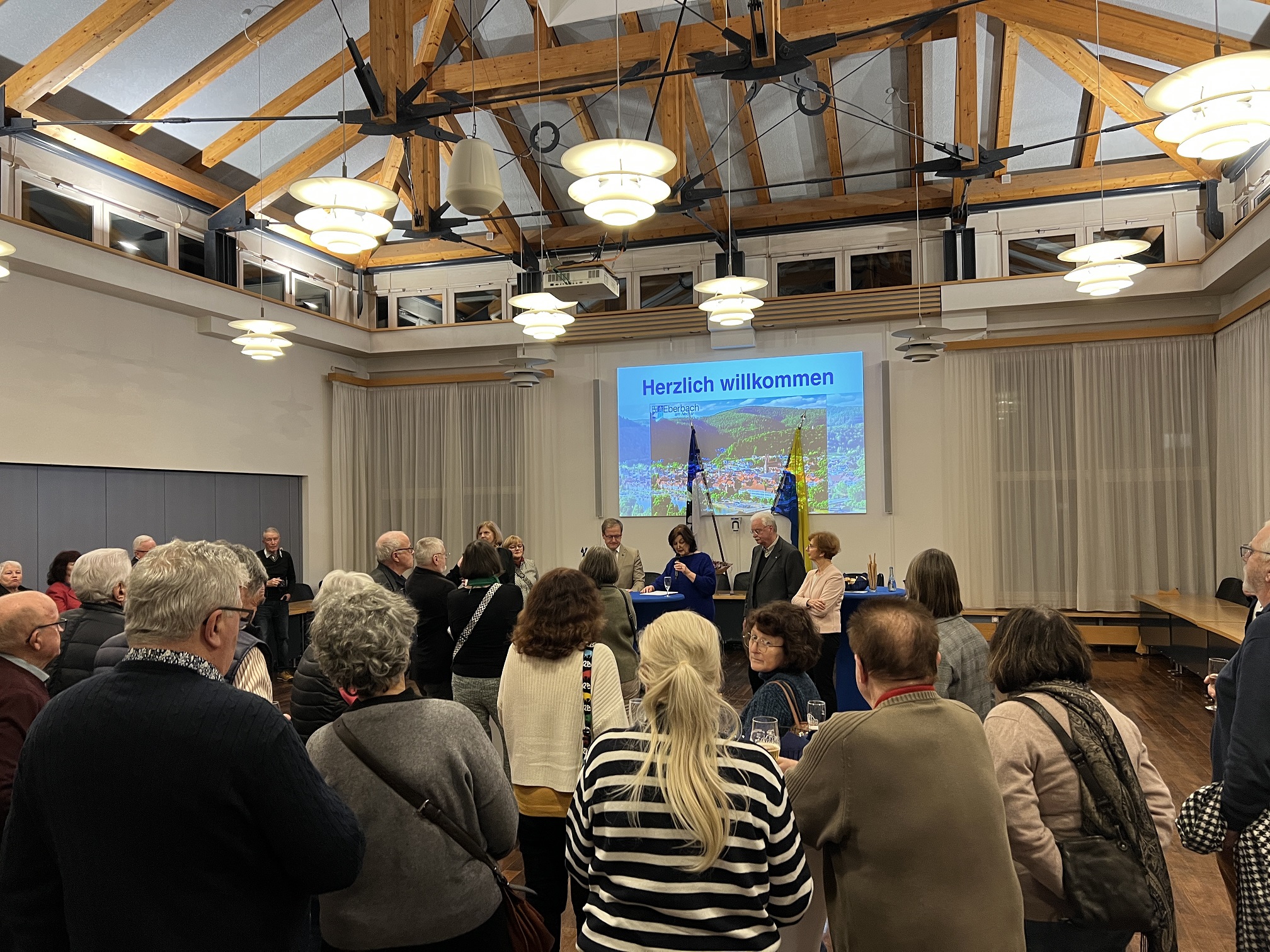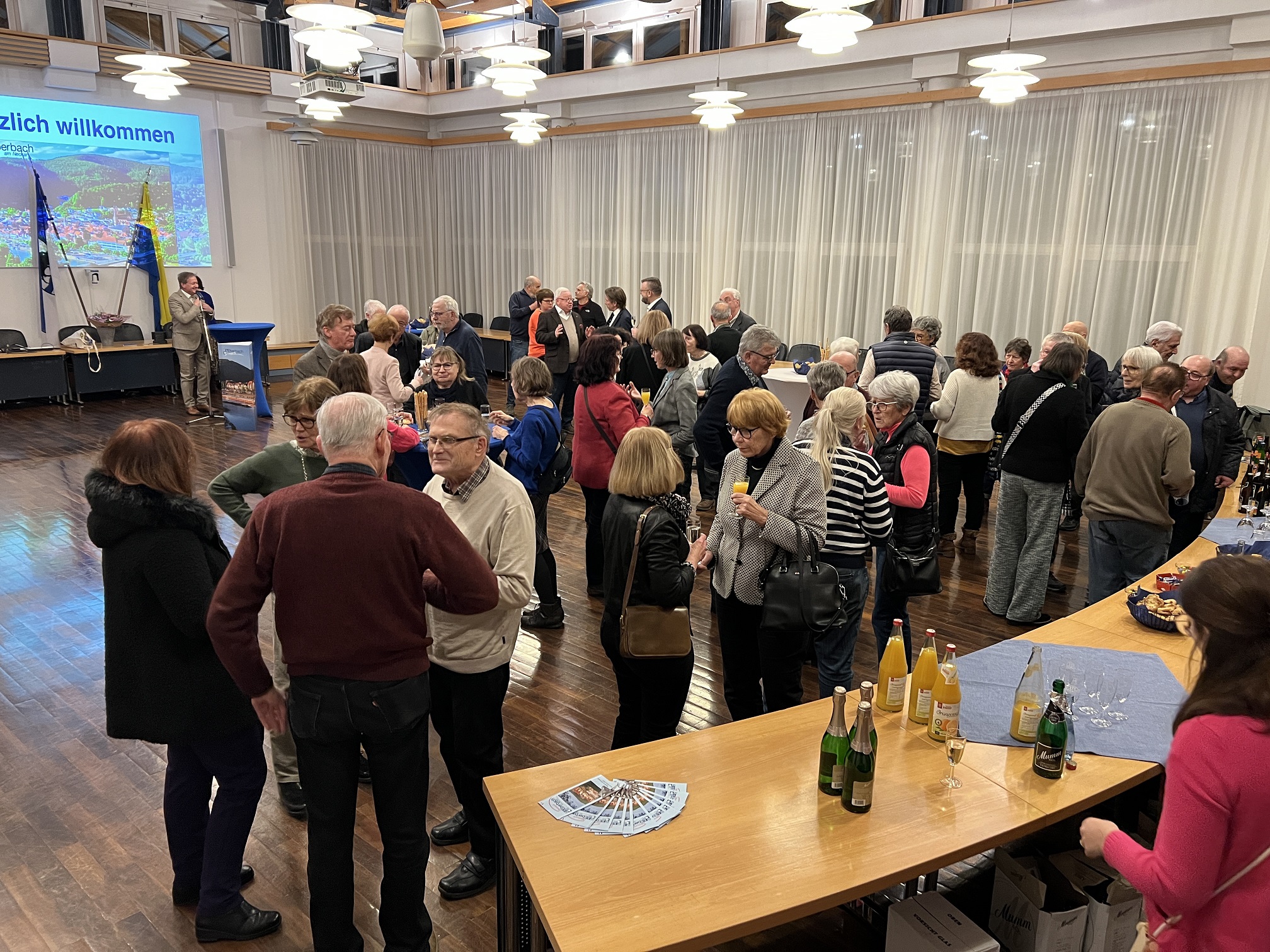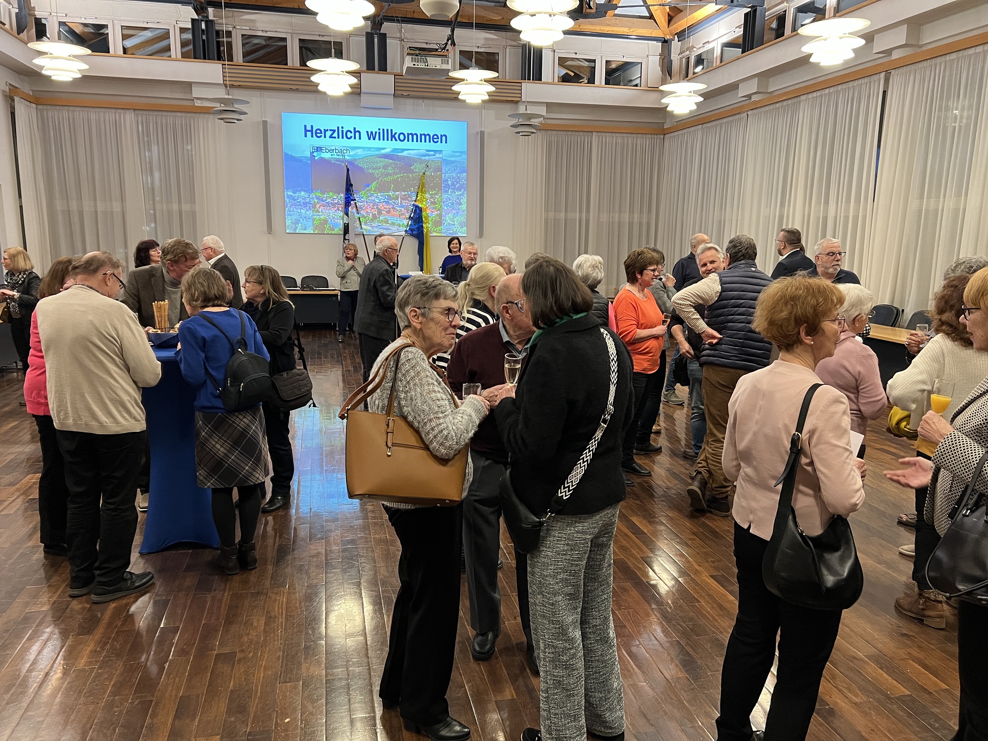 Rund 50 „Les amis d’Eberbach“ und viele „Freunde Thonons“ begrüßte Bürgermeister Peter Reichert am Freitagabend im Horst-Schlesinger-Saal. Auch Gemeinderäte waren zu dem Empfang gekommen, den die Stadt Eberbach anlässlich des dreitägigen Besuchs der französischen Freunde aus Thonon-les-Bains, der Eberbacher Partnerstadt am Genfersee, organisiert hatte. Jährlich im Wechsel findet der Besuch traditionell zur Feier des deutsch-französischen Freundschaftsvertrags statt (Elysée-Vertrag, 22. Januar 1963).