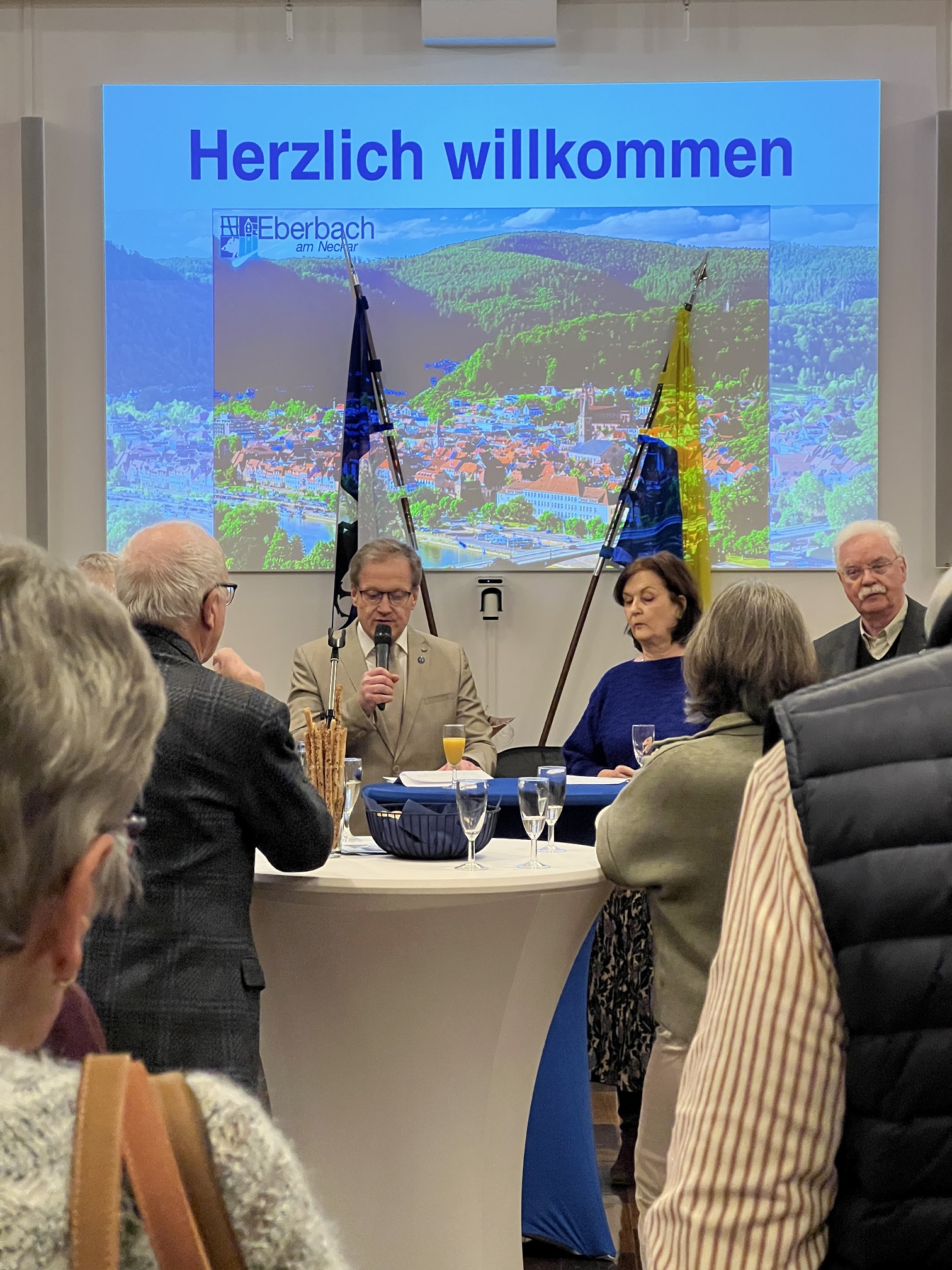 Bürgermeister Peter Reichert empfing die Gäste mit einem Neujahrsgruß und gab Ihnen für das Neue Jahr 2025 Zuversicht mit den Worten von Victor Hugo: „Die Zukunft hat viele Namen: Für die Schwachen ist sie das Unerreichbare, für die Furchtsamen das Unbekannte, für die Mutigen die Chance“. Er wünschte beiden Städten eine weiterhin erfolgreiche Entwicklung und hoffe, dass auch das Jahr 2025 ein gutes Jahr für die Städtepartnerschaft wird. Er fügte hinzu: „Die Freundschaft zwischen unseren Städten funktioniert. Sie wird von Ihnen gelebt, danke Ihnen allen.“ Abschließend schickte er Grüße an seinen Bürgermeisterkollegen Christoph Arminjon, der leider nicht nach Eberbach kommen konnte. Seine Rede übersetzte Christine Kley-Guermeur.