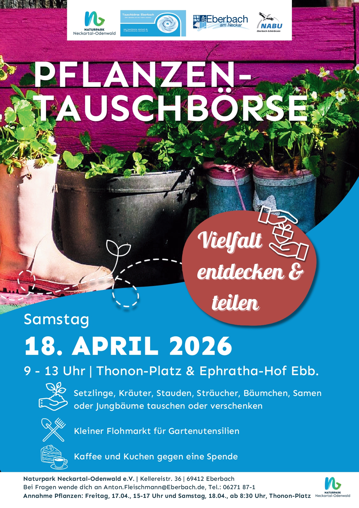 (Annahme von Pflanzen am Freitag, den 17.04. von 15-17 Uhr und am Samstag, den 18. April 2026 ab 8:30 Uhr)