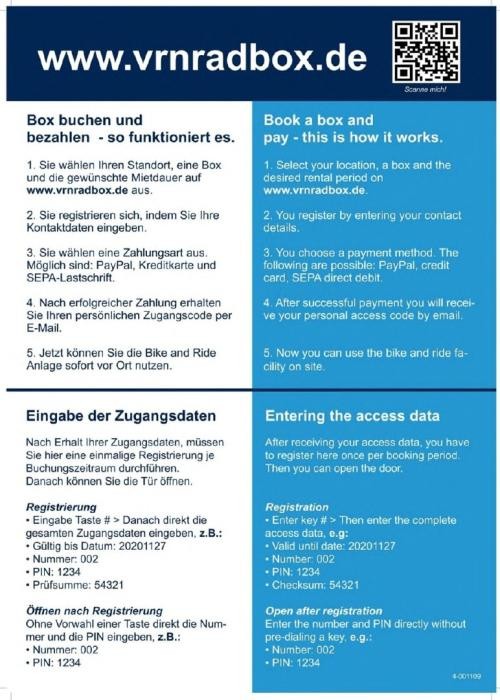 Die Buchung erfolgt bequem online unter www.vrnradbox.de. Um den Gutschein einlösen zu können, muss bei der Buchung im Gutscheinfeld der Code VRN-Radbox-2025 eingetragen werden. Anschließend wird man zur Eingabe der persönlichen Daten weitergeleitet. Nach der erfolgreichen Buchung erhält der Kunde seinen persönlichen Zugangscode für die gewählte VRNradbox per E-Mail.