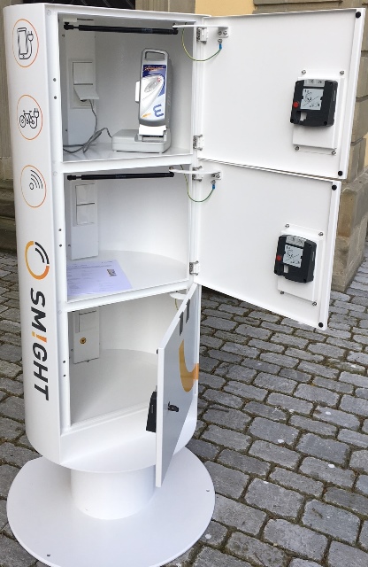 Die Ladestation bietet eine öffentliche und gleichzeitig sichere Lademöglichkeit für E-Bikes und Pedelecs. Die 3 geräumigen Fächer, mit jeweils 2 Haushaltsteckdosen, bieten genug Platz um Akkus oder Zubehör sicher aufzubewahren und schnell zu laden. Die einzelnen Fächer sind mit einem PIN-Schloss gesichert und werden mit einem persönlichen Code aktiviert.