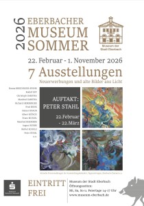 Museum der Stadt Eberbach, Sommer 2026: 7 Ausstellungen, 17 Künstler, die fest mit Eberbach verbunden sind 22. Februar – 1. November 2026 | Neuerwerbungen und alte Bilder ans Licht