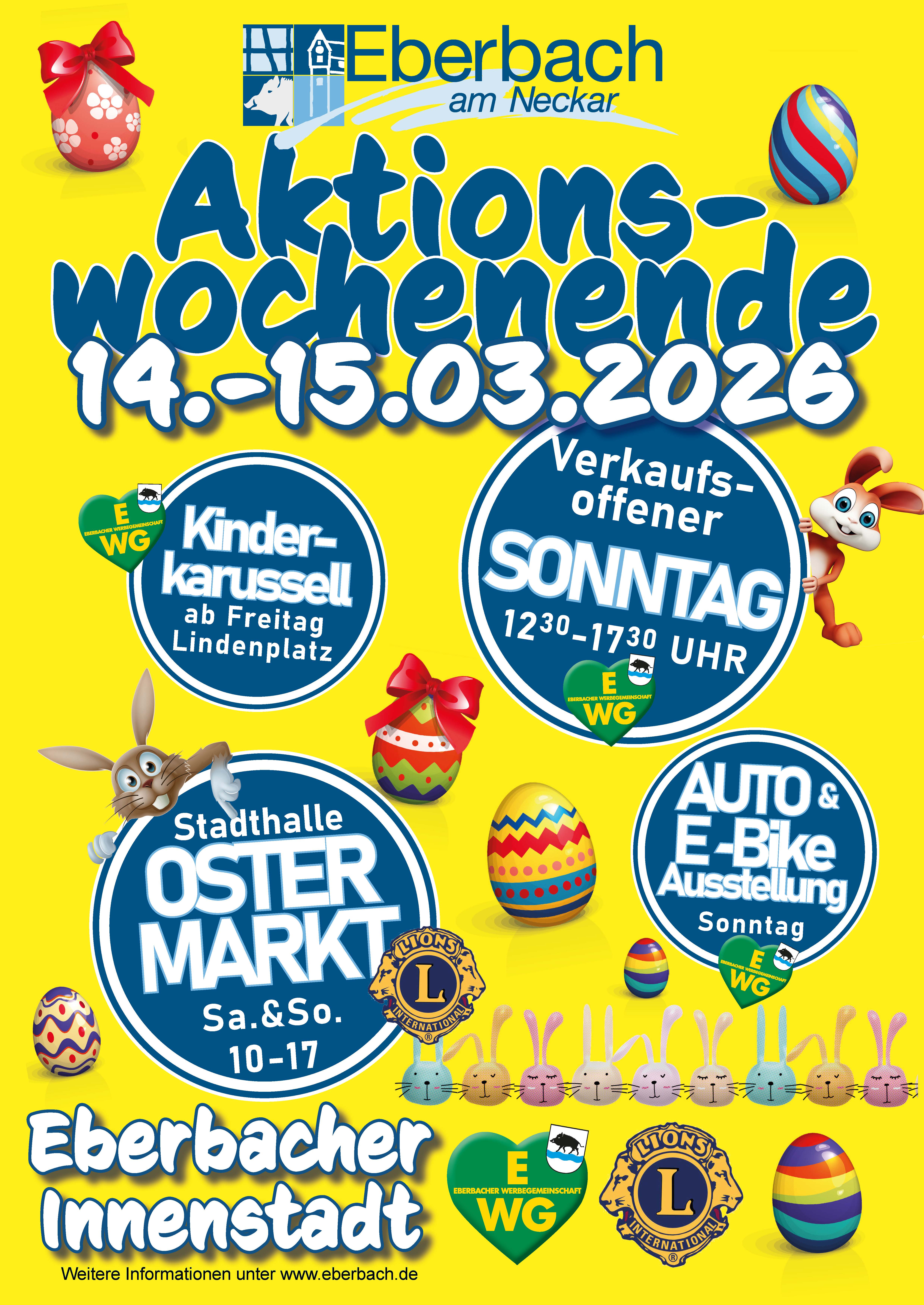 Die Eberbacher Werbegemeinschaft und der Lions Club Eberbach präsentieren ein Wochenende mit Kunsthandwerk, einem sonntäglichen Einkaufserlebnis mit E-Bike- und Autoausstellung