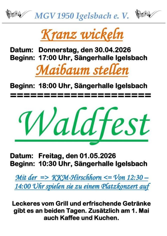 Mai Grillfest rund um die Concordia Hütte in Neckarwimmersbach. Die KG Urmel lädt alle Wanderer, Radfahrer und Grillliebhaber herzlich ein.